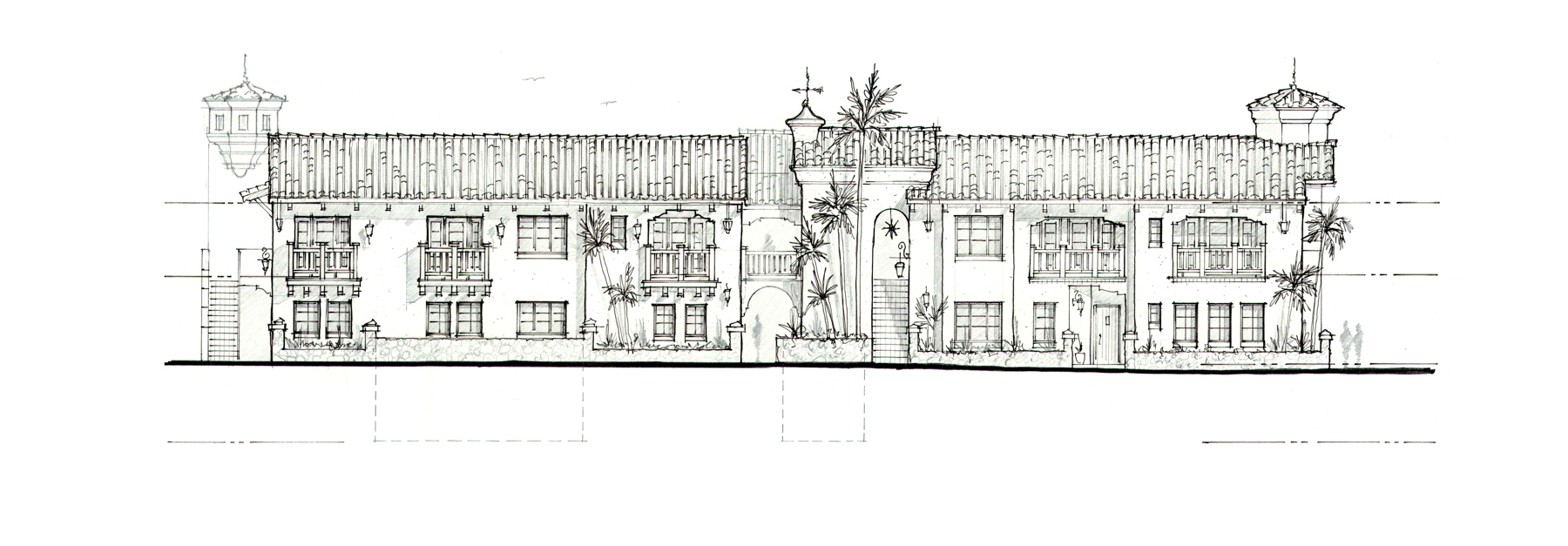 Its white stucco walls, red-tiled rooflines, and handcrafted iron details present an authentic revival of the beloved regional style, effectively converting a previously uninspired façade into an inviting, timeless presence. Inside, 24 studios, 4 one-bedroom suites, and 2 two-bedroom retreats are each designed as a stylish hideaway, uniting old-world charm with minimalist contemporary design.
